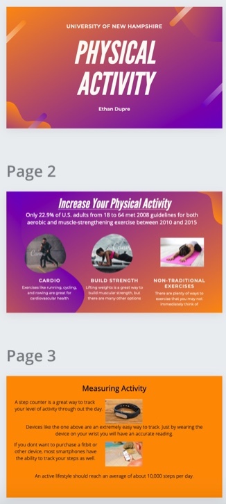 I used Canva. I wanted to create a presentation that relied on visuals and minimal writing. One issue I had while creating my demo presentation was deciding how much detail I would need to include. Even though this was for practice and was very basic, I still was focused on the intended audience. The Canva platform makes it very easy to organize the presentation. They have a lot of formatting options that are very easy to implement. They also have visuals and image files already in the program, so there is no issue with figuring out how to upload image files. I have used Canva in the past and am fairly comfortable with the platform. Depending on what the presentation needs to be I could see myself using it again in the future.